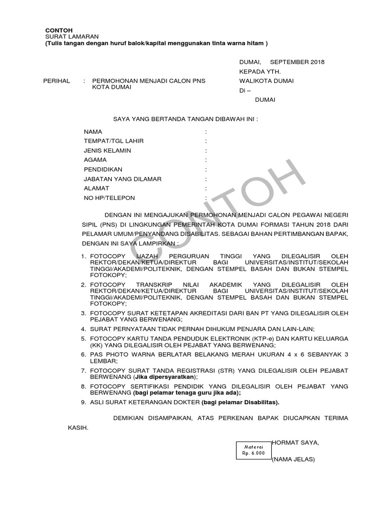 Contoh Format Surat Lamaran Cpns Pekanbaru 2021 Wajib Ditulis Tangan Dengan Tinta Hitam Tribun Pekanbaru