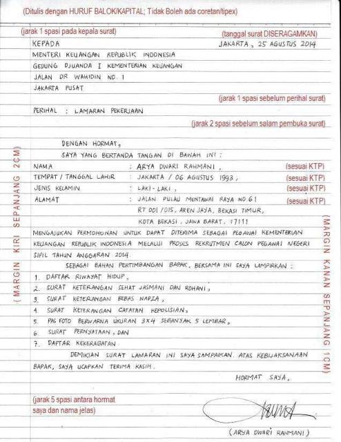 Contoh Surat Lamaran Cpns Tulis Tangan Beserta Format Penulisannya